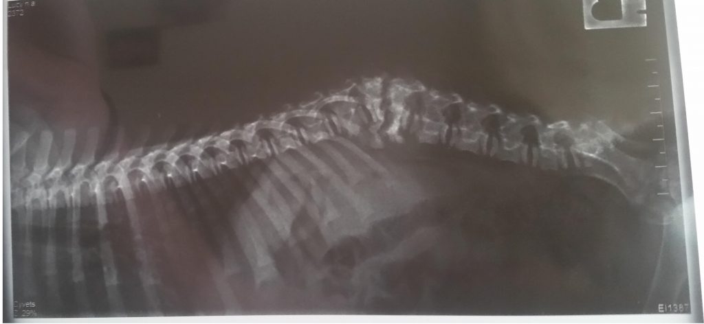 A avut coloana rupta, acum s-a sudat si are paralizie picioare spate.
