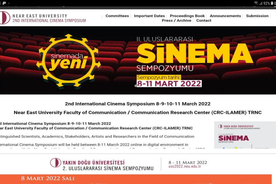 Home » Conferinte » 2nd International Cinema Symposium 8-9-10-11. Martie 2022 Universitatea din Orientul Apropiat Facultatea de Comunicare / Centrul de Cercetare în Comunicare (CRC-ILAMER) TRNC