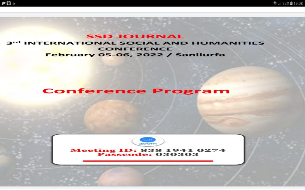 A 3-a Conferință Internațională de Științe Umaniste și Sociale – Sanliurfa Turcia 05.02.22