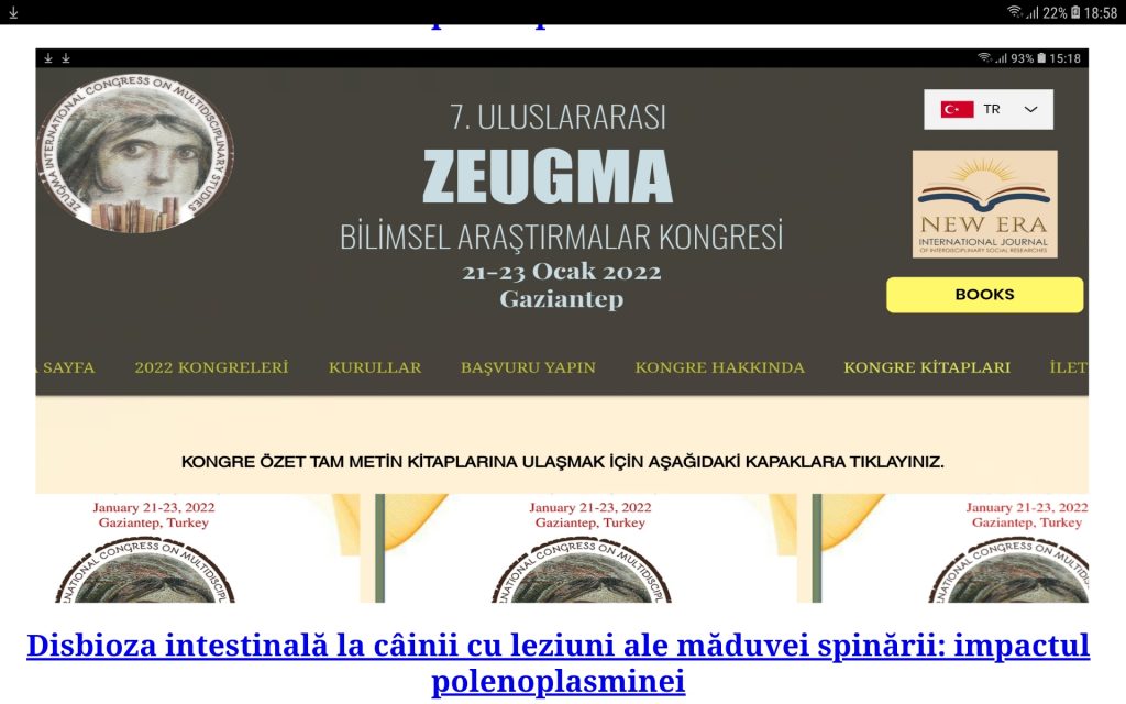 A 7 -a Conferință internațională Zeugma privind cercetarea științifică – Gaziantep Turcia 21.01.22