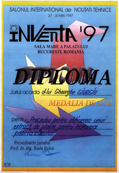 Cronologie Deniplant Brevetul de inventie al tratamentului pentru psoriazis primeste medalia de aur la Inventa 1997